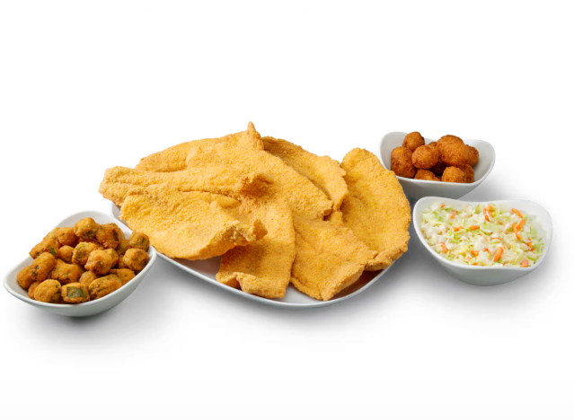 Fried catfish is a popular dish, especially in the South where it’s served in endless ways: In a basket with french fries, as part of a breakfast platter, Cajun-inspired soul food plates, and more—fried catfish is a versatile and delicious protein. Catfish fillets tend to be comparatively large as the fish itself gets quite big, resulting in substantial fillets that are meaty and almost boneless. But where are the really hefty portions to be found? Here are six chain restaurants with the most generous catfish fillets you can get.