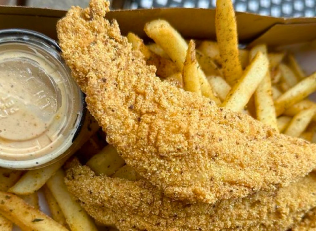 Seafood chain Hook & Reel has a Fried Catfish basket on the menu, with nice big portions of fish served with fries. “I had the catfish platter with tartar sauce and a Pepsi. Everything was hot and delicious,” one fan shared of their meal. “I took a few bites of crab legs, crawfish, shrimp, and lobster tail. It was awesome.”