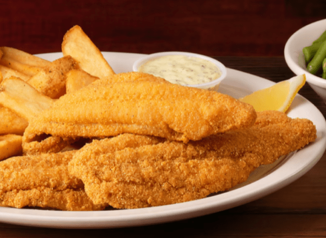 Texas Roadhouse is known for affordable quality steaks but also has a fan-favorite Fried Catfish plate on the menu: Each platter of U.S. farm-raised catfish (breaded in southern cornmeal and fried) is served with the choice of two sides, which include baked potato, buttered corn, Caesar salad, and fresh vegetables. Like everything else at the chain, the portions are more than generous.