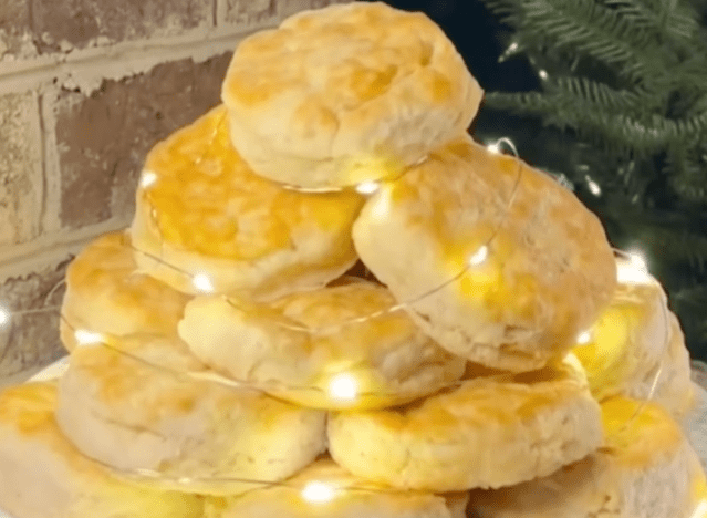 Cracker Barrel is famous for its delicious warm biscuits served all day long. “We’ve been making biscuits from scratch for over 45 years with the same simple, high-quality ingredients, using custom-designed rolling pins and biscuit cutters developed by Cracker Barrel many, many years ago,” the chain says. “Each of our 664+ Country Stores has a dedicated biscuit oven that produces a fresh batch of warm biscuits, perfectly flakey in texture and thickness. Handmade and delicious. That’s the reason why they all look a little bit different.”