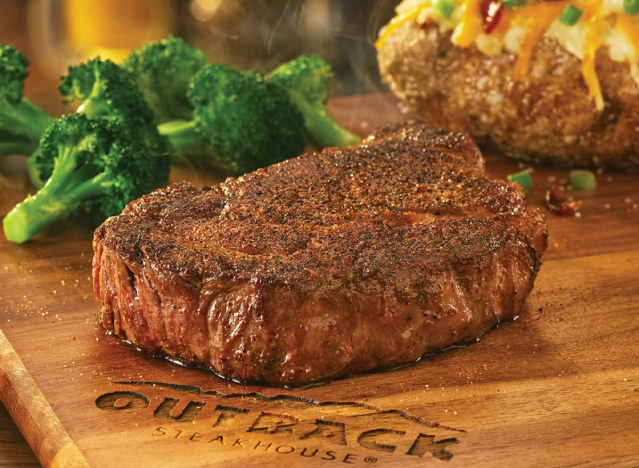 Over at LongHorn, you can get a 12-ounce ribeye for just $27.49, including sides. According to the value-driven chain, the “well-marbled,” “juicy,” and “well-seasoned” steak is the top-selling item. It also comes with two sides and the restaurant’s famous bread.