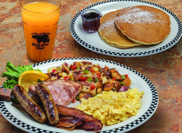 The portions at Black Bear Diner are huge, and the quality is outstanding. The Grizz is a popular breakfast platter consisting of 2 sweet cream pancakes, 3 eggs any style, 2 slices of thick-cut bacon, 2 sausage links, a smoked ham steak, and a choice of side. “This American diner chain beats Denny’s any day of the week! Not only are the portions extremely filling, but also the taste is absolutely yummy,” one diner said.
