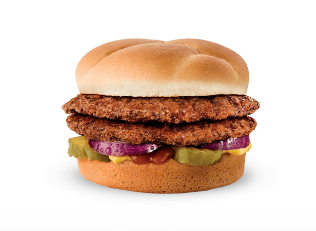 Culver’s flips a quality burger, pressed thing with lacy edges. “Garlicky with a smooth, pressed-together demeanor, the meat almost melts in your mouth. Accompanied by the gently buttered, marginally sweet bun, the entire sandwich is nearly unstoppable—keyword, nearly. I was happy with my topping selection. The crunchy pickles and onion slices elevate the beef without overpowering it—like what I experienced at Steak ‘n Shake. And the ketchup and mustard are a condiment match made in heaven—the perfect sweet, bold, and tangy duo. There is a reason why this burger is the chain’s bread and butter,” Hageman writes.