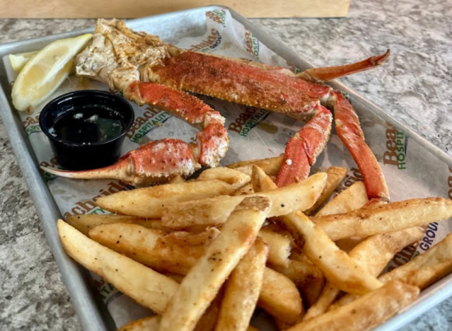 Joe’s Crab Shack serves big legs under the “crab lovers” section of the menu, ranging from Snow Crab to King, depending on the type of meat you prefer. You can also order the Crab Daddy Feast, which comes with an assortment of Snow, Dungeness, and King Crab. “We each got two large clusters of crab legs, one corn on the cob and a red potato,” one diner said. “All covered in spicy old bay spices. It was a big and very tasty bucket. It took some time and a little work, but we devoured in all. The crab was just so great dipped butter and spritzed with lemon. The meat was sweet and cooked perfectly. It was a great meal.”