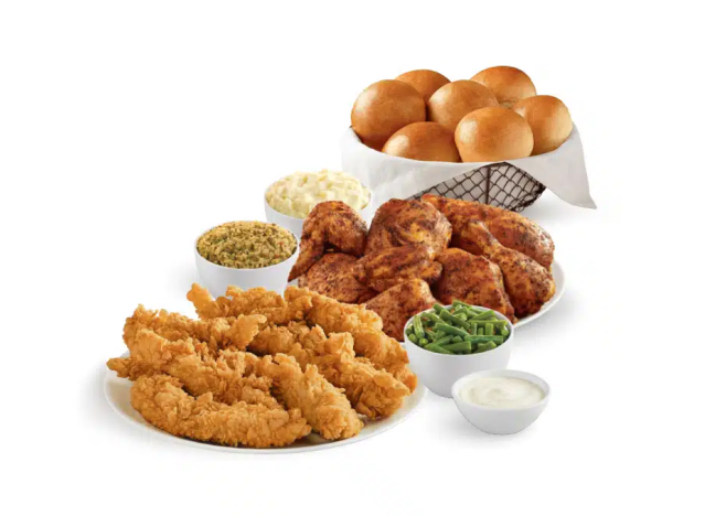 Golden Chick has a family meal called The Mixer which has it all: 8 pieces of Mixed Chicken, 16 Tenders, 8 Rolls, family gravy or sauce, and 3 family sides. There’s also the Golden Tenders option, with 12 Tender Meal with gravy or sauce, 2 family sides & 4 Rolls.