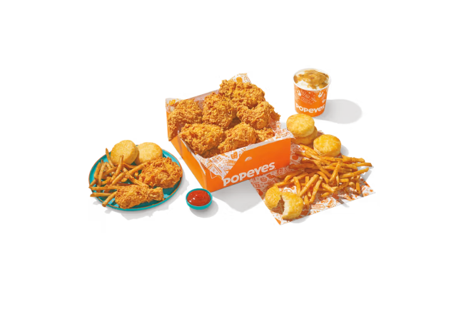Popeyes has a 12 pc Classic Signature Chicken Family Meal for guests to enjoy. This meal contains 12 pieces of juicy signature chicken, marinated in Louisiana herbs and seasonings then battered up with crunchy southern coating and fried until golden brown. Family Meals Includes 2 large signature sides, and 6 warm buttermilk biscuits.