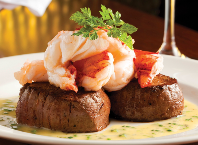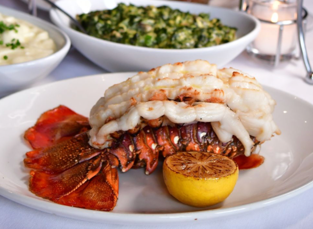 Fleming’s Prime Steakhouse & Wine Bar serves lobster tail specials that customers love. You can enjoy steamed lobster tails on their own, or top a steak with poached lobster. “The steak melted in my mouth and has to be one of the best steaks I’ve ever had! The truffle poached lobster on top just sent it over and above my expectations,” one Yelp reviewer raved.