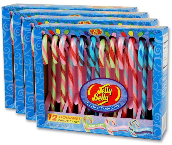 These Jelly Bean “Gourmet” Candy Canes come in three fruity flavors: watermelon, tutti-fruitti and blueberry. And just like the jellies, they’re artificially flavored sugar with crunch instead of chew.