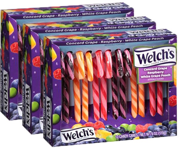 While Welch’s 100% Grape Juice may be made from the real thing (aka concord grapes), their concord grape flavored candy canes are not. And the same goes for the raspberry and white grape peach flavors. With 12 grams of sugar and a laundry list of manmade chemicals, these candy canes are almost the worst.