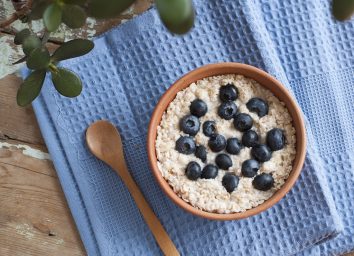This recipe keeps things simple, with flax seeds, maple syrup, and cinnamon. Of course, you can always top the oatmeal with more fresh fruit, too. Blueberries are a particularly delicious option we love.