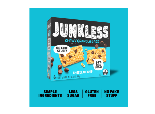 JUNKLESS® Chocolate Chip granola bars are a delicious better-for-you snack. “The best granola bar. I love the ingredients and don’t feel guilty giving these to my family. The price point for this bar is great and doesn’t break the bank. The packaging sticks out on the shelf so you can’t miss it,” one fan said.