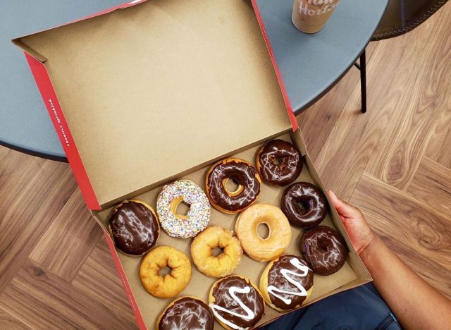 Like Dunkin’, Tim Hortons understands that great coffee deserves to be paired with one of the most dunkable sweet treats of all time: doughnuts. The selection may vary depending on the restaurant, but the main thing you need to know is that each location bakes its own doughnuts in small batches throughout the day. Afterwards, those fresh-made rounds are hand-dipped, glazed, and decorated by Tim Hortons’ bakers.
