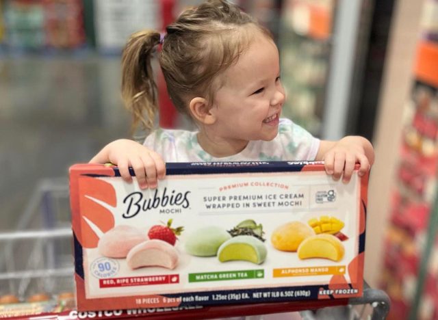 Costco has stocked Bubbies mochi on and off for a few years. It’s a fun twist on your typical ice cream. The Costco variety pack comes with 18 pieces—most recently, the flavors included strawberry, chocolate, and mango—for $11.49 at the warehouse.