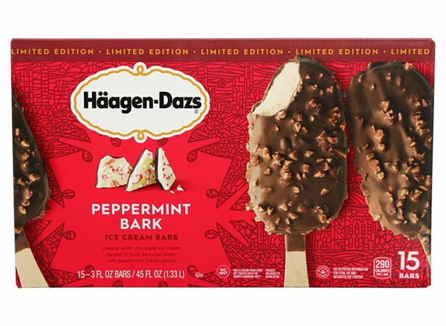Häagen-Dazs has released its limited-edition peppermint bark ice cream bars, making a good case for ice cream to be a part of any festive holiday celebrations. White chocolate ice cream is covered with dark chocolate and peppermint bark candy pieces for a delish treat. You can grab 15 bars for $16.99 from Costco via Instacart.