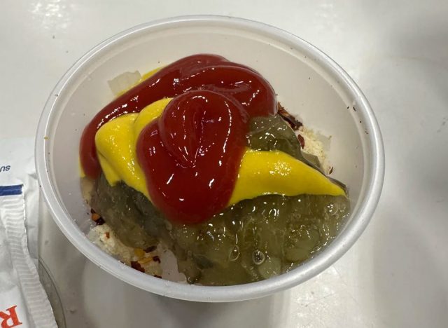 “When the onions are available I make the ‘Royale,'” Redditor bixbyvegas shared in a post this week. The photo shows a plastic container of onions and a few packs of Parmesan cheese and red pepper flakes, all freebies at the food court. “That what I call it particularly because I rarely get to make it as my Costco always runs out of onions!”
