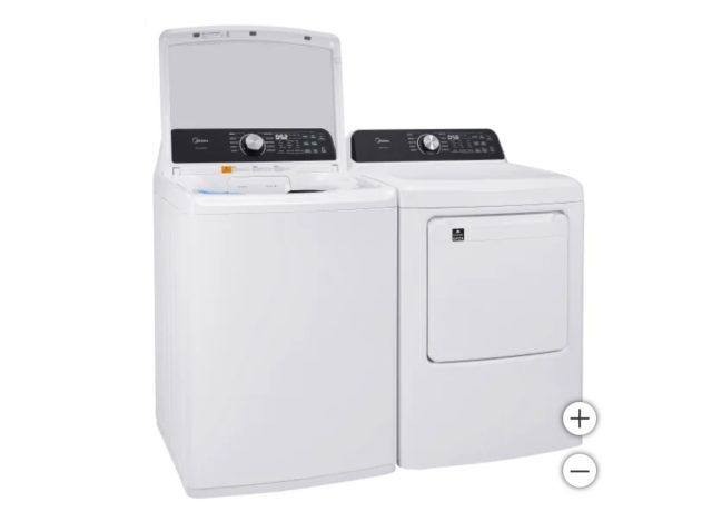 This Midea 4.5 cu. ft. Top Load Washer with Impeller and 7.0 cu. ft. Dryer is $100 – $200 off. “Great washing machine. It fits in my small space & saves water. It has many features. You can see through the glass . Can connect to my iphone via bluetooth,” a shopper says.