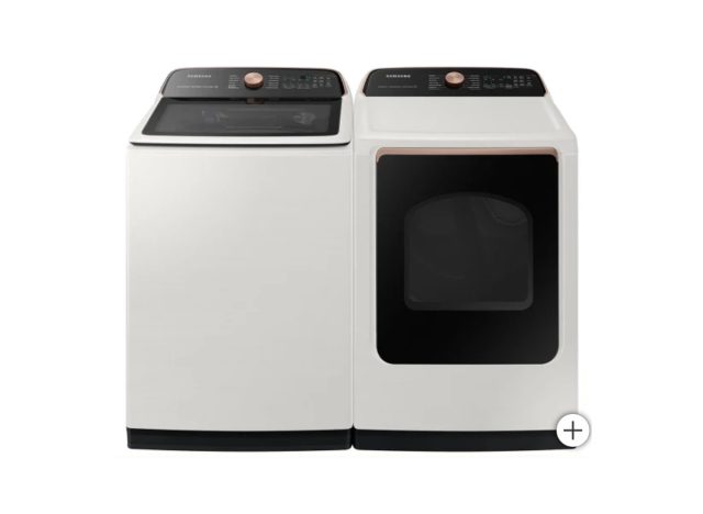 Shoppers also love the Samsung 5.5 cu. ft. Top Load Washer with Super Speed Wash and 7.4 cu. ft. Smart Electric Dryer with Steam Sanitize, $700 off. “Absolutely love this machine and all of it’s features. It’s capable of doing extra large loads and does small ones just as well. It is truly a smart machine. Always the right amount of water and there’s a deep fill option. Everything comes out perfectly every time. I had originally gotten a Whirlpool with a dual agitator that I returned because it just didn’t work and had an LG that I was replacing. This machine is by far the best one I’ve used in decades,” a shopper writes. “Does an awesome job, large capacity tub fits my bed comforters,” another adds.
