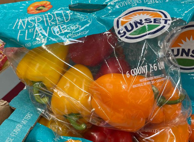 Priced at $6.78 for a bag of six, these bell peppers from Sunset brand were all tossed in a bag, not lined up and color coded like the ones from Costco, so they didn’t look as nice. The peppers themselves were a bit narrower, too.
