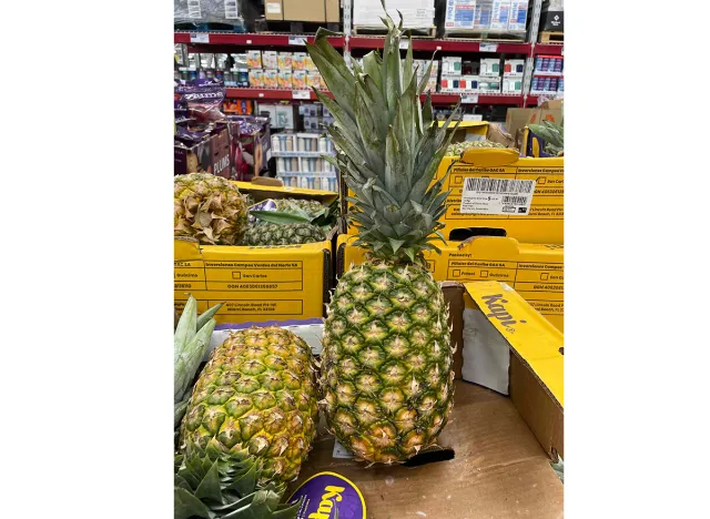 Priced at $2.98, this pineapple from Kapi has lots of gold undertones and its leaves look a little haggard. I’m worried that this fruit is already past its prime, and it looks a bit mangy. Pass.