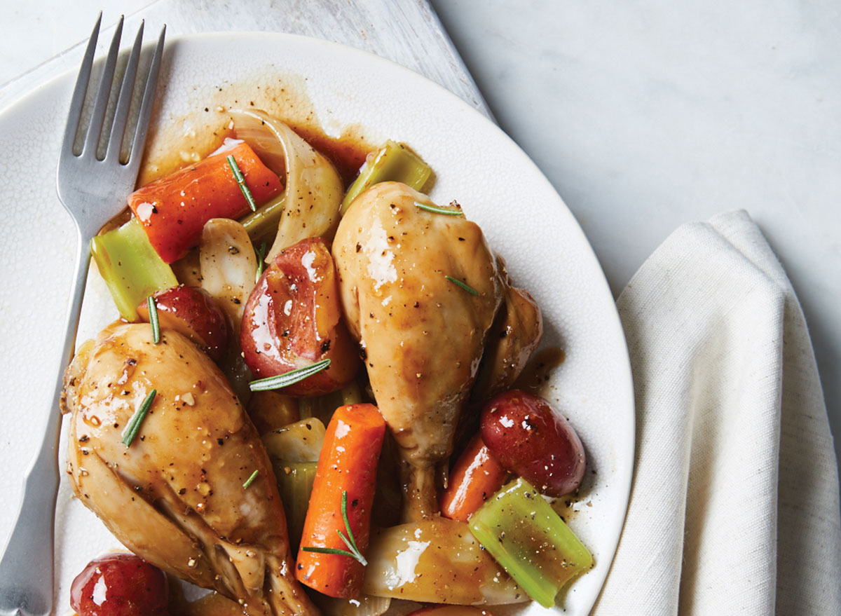 Get our recipe for Maple-Balsamic Chicken and Vegetables.