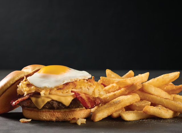 Casserole fans are going to love the new holiday menu Breakfast Burger at Cracker Barrel. Each burger is made with a half pound beef patty, American cheese, the signature hashbrown casserole, bacon, and a sunny-side up egg all on a toasted bun. Comes with one classic side, and is available all day for you breakfast-for-dinner types.