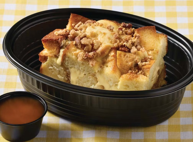 The Butter Pecan French Toast Bake is a new dessert dropping just in time for the holidays. This treat consists of thick-cut country bread soaked in vanilla custard with cheesecake filling, baked until golden and topped with praline pecan streusel. Served with butter pecan syrup and choice of breakfast meat.
