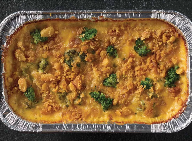 Cracker Barrel’s Broccoli Cheese Casserole is back on the menu for the holidays, and the perfect seasonal plate to enjoy as a side or just by itself. This dish consists of tender broccoli and seasoned rice baked in a rich cheese sauce, and topped with buttery cracker crumbles.
