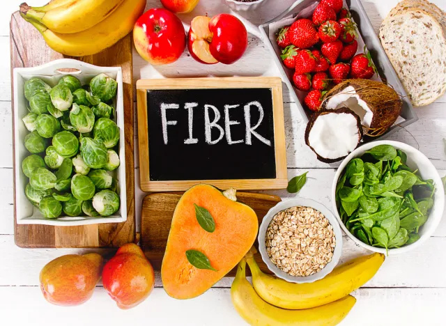 It’s easy to overlook just how important fiber is for your overall wellness, especially when you’re trying to slim down and slash belly fat. According to Shapiro, fiber is essential when it comes to balancing your blood sugar levels, helping you to feel full, promoting healthy digestion, and keeping bloating at bay. She recommends aiming for 25 to 30 grams of fiber each day. Consider working high-fiber foods like raspberries, blackberries, collard greens, lentils, butternut squash, chia seeds, pears, oranges, dried figs, and canned pumpkin into your diet. And if you start your day with a high-fiber breakfast, it will set you up for success before mid-day cravings ever hit.