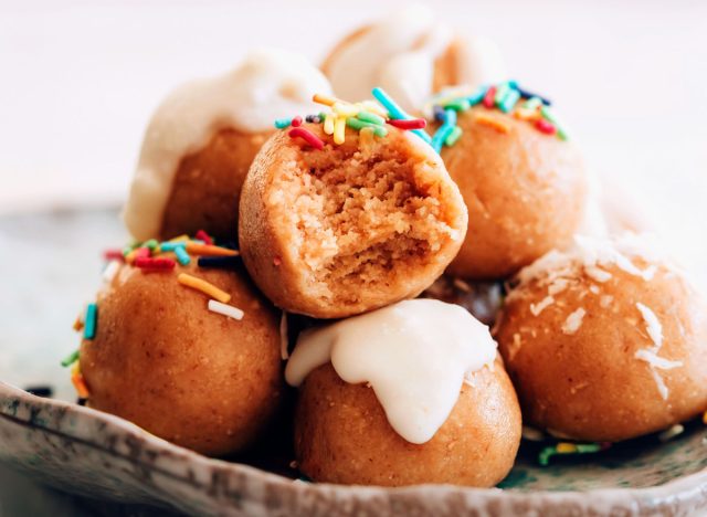 Sugar cookies are the quintessential Christmas cookie and normally aren’t too tricky to bake. This recipe’s even easier because it requires no baking time at all and just six ingredients to form the bite.