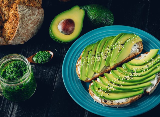 Harvard Health states that “healthy fats,” which include polyunsaturated and monounsaturated fats, can help lower your risk of disease. D’Angelo suggests replacing saturated and trans fats with these healthier fats, which you can get from foods like olive oil, canola oil, lean meats, nuts, avocados, and fish.