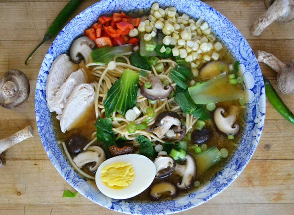 For the noodle lovers out there, this one’s for you. Perfectly presented, this colorful bowl is the low-fat makeover version of the trans-fat-filled take-out staple. With its fresh ingredients of chicken, mushrooms, bok choy, and hard cooked eggs, it will feed your appetite without the heap of calories and fat. Speaking of restaurants, be sure to avoid The Absolute Worst Option on the Menu at 20 Popular Restaurants.