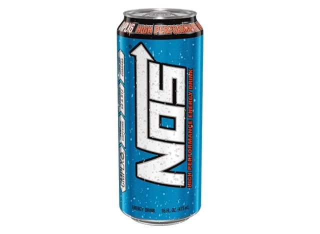 NOS, an energy drink made by the Coca-Cola Company, features a load of high fructose corn syrup, two kinds of artificial color, three kinds of preservatives, and frankly no ingredient of any redeeming value. It’s also packed with 220 calories per can, which is another reason to avoid it.