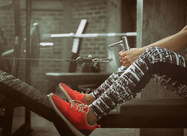 How to do it: Attach a V-bar (or two row handles of the same size) to the cable machine and adjust the height so that the tops of the handles are level with the center of your chest. Choose a weight that feels challenging but does not cause strain. Then, sit on the bench with your knees slightly bent. Reach out, and pick up the handle attachment with both hands. Hinge slightly backward so your core engages. As you brace your ab muscles, move your shoulders back and down, then pull the handles back toward your stomach, bending your elbows so they “kiss” your waistline. Pause for a second, and then slowly extend your arms, returning them to the starting position. That’s one rep. Need to see how it’s done? Watch this video demo.