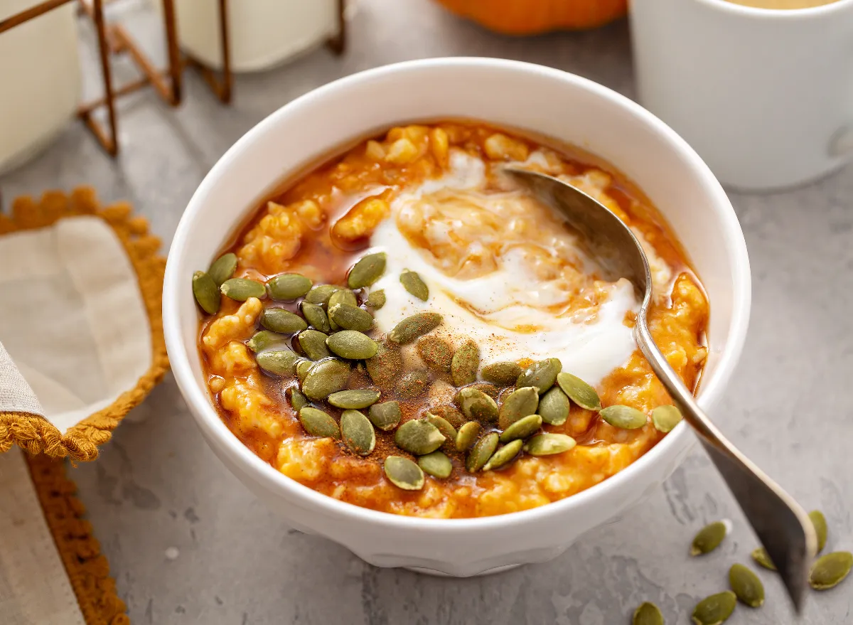 We decided to gather a list of fun, creative fall breakfast recipes that are not only delicious but healthy as well! To do this, we talked with some expert dietitians to find out what morning meals they’ve been enjoying this season so far. Read on to see what they chose, and for more healthy eating tips make sure to check out The 7 Healthiest Foods to Eat Right Now.