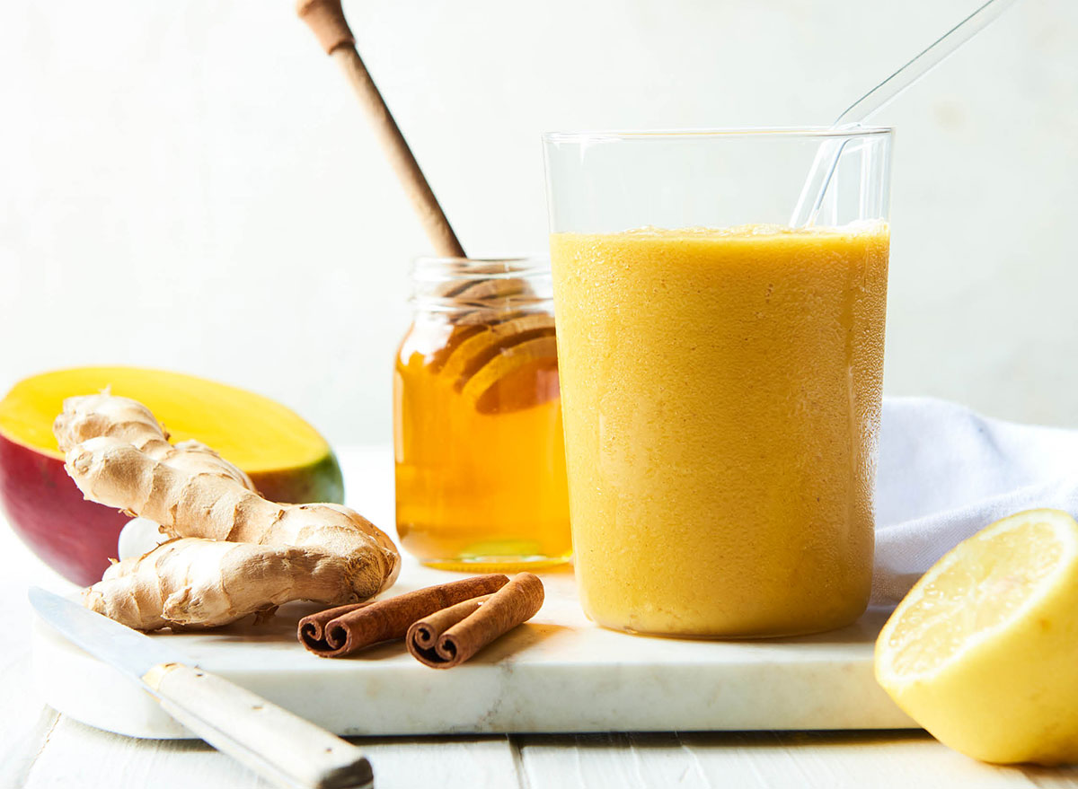 “This immune-boosting smoothie is great for all that fall has to bring: crisp weather, football games, and the dreaded cold and flu. I like to support my immune system by starting my day with immune-supporting ingredients like 100% orange juice, ginger, and mango chunks to give my body important nutrients.” – Manaker