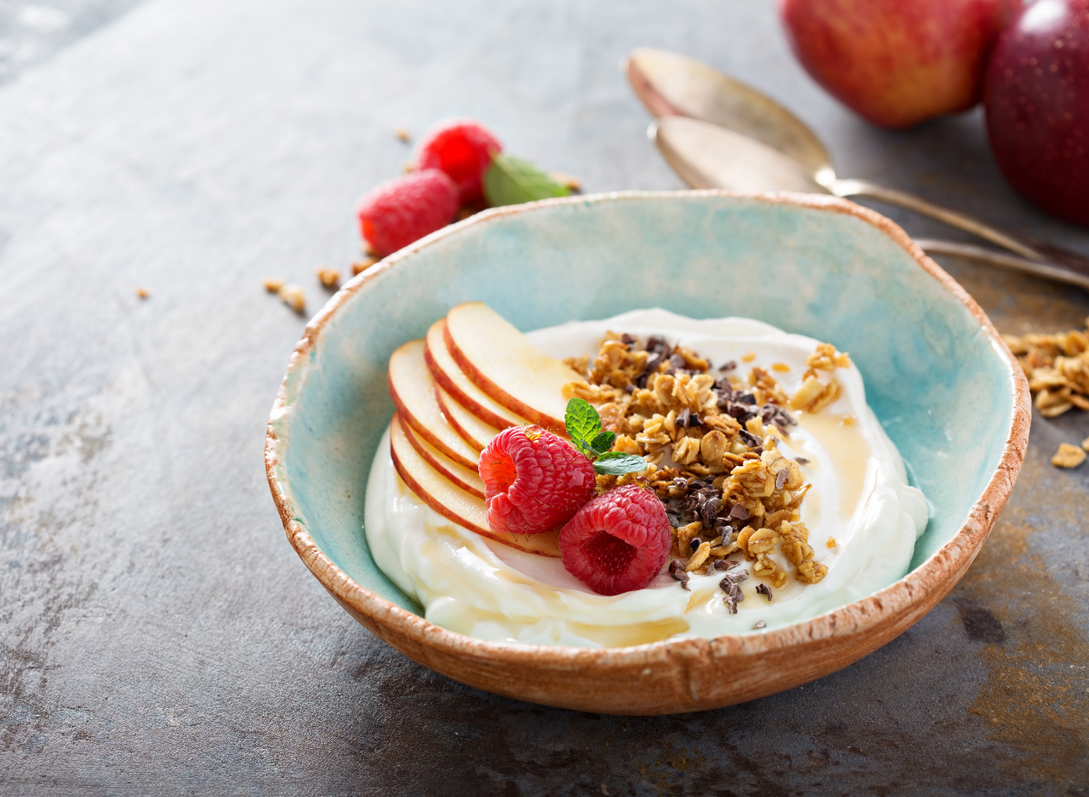 “It’s apple season, so use up those bags of apples you picked at the orchard by cutting one up (keep the skin on for added fiber), microwaving with a dash of cinnamon for a few minutes until warm, and pouring over plain or vanilla Greek yogurt. Top with a sprinkle of plain oats, any chopped nuts or seeds, and more cinnamon, and you’ll have a healthy protein-packed apple pie dish for breakfast.” – Burak