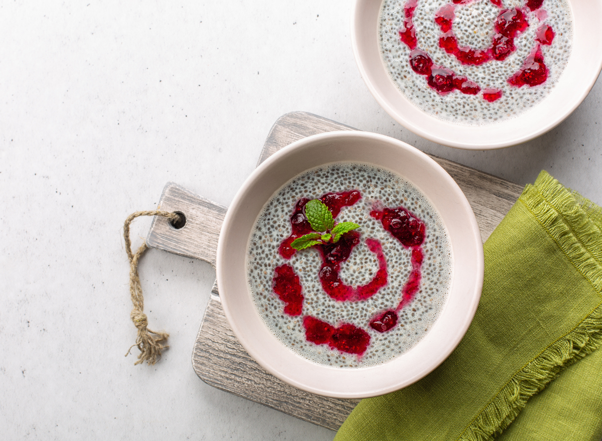 “A classic chia seed pudding made with cranberry puree highlights this fall-favorite fruit and adds some yummy tartness to an otherwise ho-hum breakfast. Adding these berries gives your breakfast a bit of vitamin C too.” – Manaker