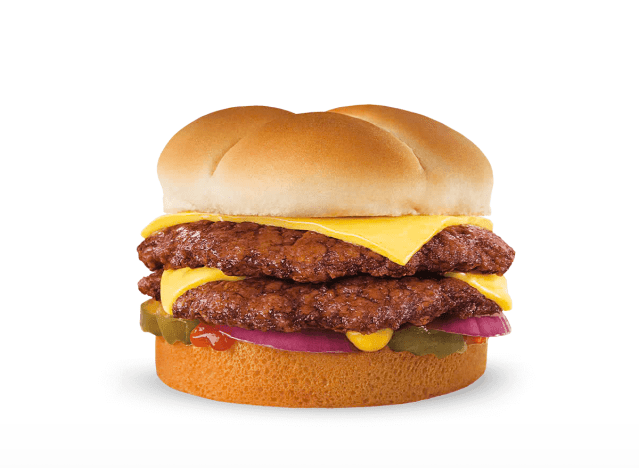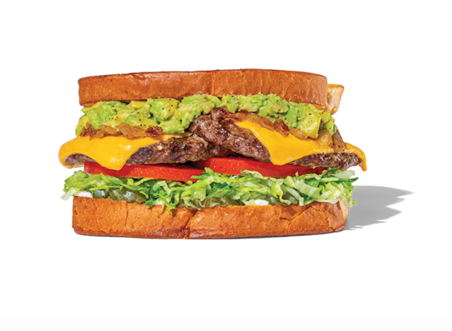 Jack In the Box‘s Classic Smashed Jack is the epitome of a classic, juicy fast-food burger: 1/4lb smashed patty, American cheese, pickles, grilled onions, and Smashed Jack Sauce on a brioche bun. It’s filling without being overwhelming, and when done right, one of the best drive-thru options you can get. “Just had two smashed jacks. Definitely better than their other burgers and some of their other competitors!” one fan said. “Both burgers were juicy (I pulled the meat off plain to taste just to confirm). Granted they’re pricier like everyone else now but this will be my go to burger!”