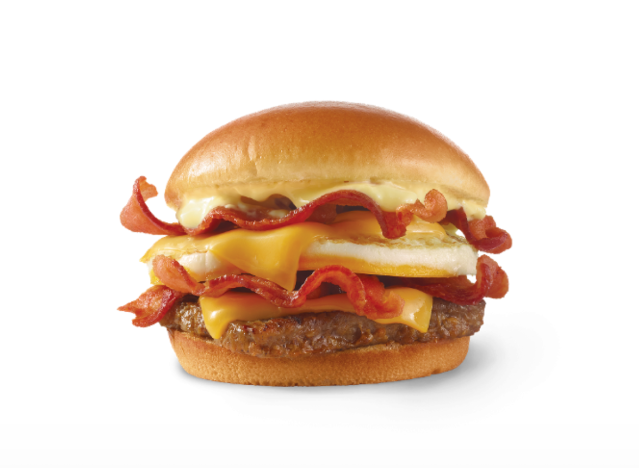 Wendy’s uses real, freshly-cracked eggs for delicious sandwiches like the Breakfast Baconator and Sausage Breakfast Burrito. “For our breakfast sandwiches, we start with a freshly-cracked, grade A egg,” the company says. “Once it’s on the grill, we break the yolk and fry, flip, and fry some more until the yolk is fully cooked and ready for a sandwich.”