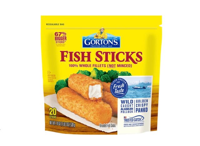 Gorton’s Crunchy Breaded Fish Sticks are made from wild-caught Alaskan Pollock whole fillets, which are coated in crunchy breadcrumbs. The brand also has Crunchy Breaded Fish Fillets also made from wild-caught pollock and crunchy breadcrumbs, and again made from whole fillets, not minced fish.