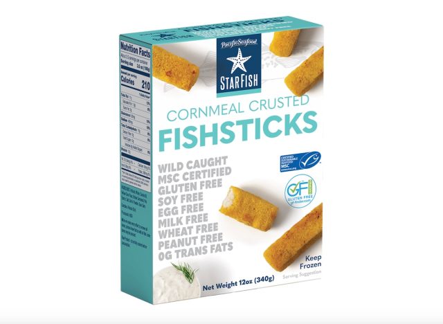 A Whole Foods exclusive, the Pacific Seafood Starfish cornmeal crusted fish sticks are made from wild-caught pollock. “Starfish is a premium line of seafood, sold exclusively at Whole Foods Market,” the chain says. “Starfish products are sustainably harvested and made without artificial ingredients or preservatives, with numerous non-GMO and gluten-free options.”