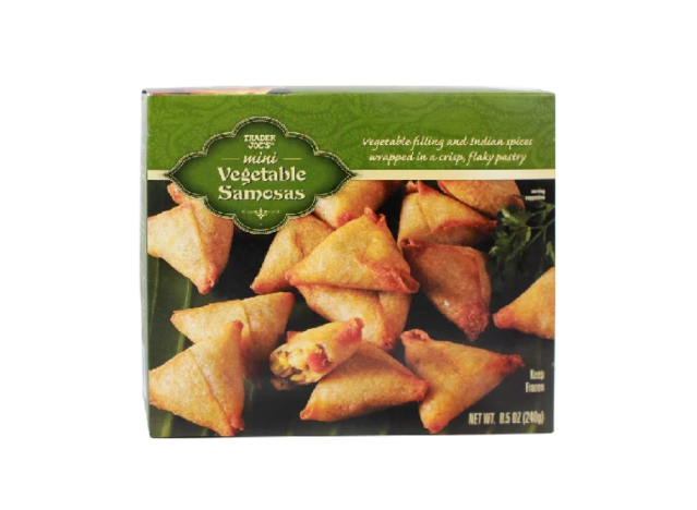 Trader Joe’s Mini Vegetable Samosas are packed corner-to-corner with a curry-like mixture of peas, carrots, potatoes, lentils, onions, and Indian spices. “They are a tad spicy but so yummy… I like something to knock down the heat- a mint sauce, a tamarind sauce or a mango chutney,” one fan said.