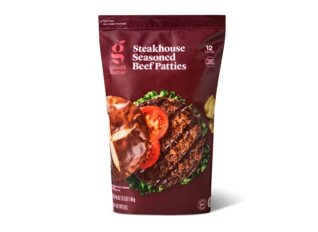 Another delicious option from Target is the Good & Gather Steakhouse Seasoned Beef Burger Patties. “Tasty, charbroiled steak burger. Smokes on the stove, grills well with preparation utensils. I recommend, great packaging, solid sterile,” writes a shopper. “The best burger I’ve eaten so far. Juicy, rich & delicious,’ adds another.