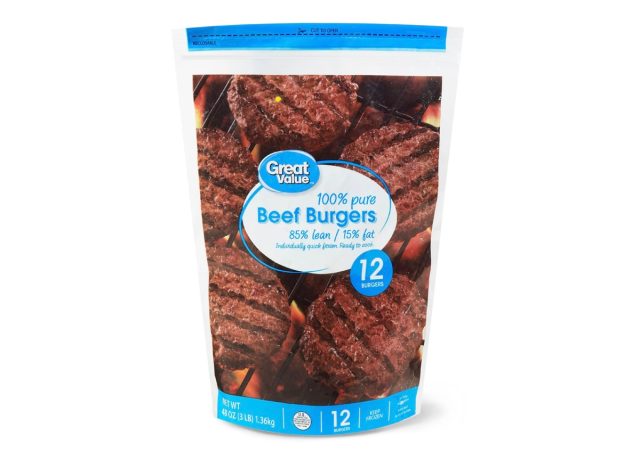 Great Value 100% Pure Beef Burgers are 85% lean/15% fat for an extra juicy taste and texture. “We made these on the grill the same night I got them!” one Walmart shopper said. “These are so juicy and flavorful! I will definitely purchase these again! Just the right fat ratio to make them taste great and did not shrink in size after grilling.”
