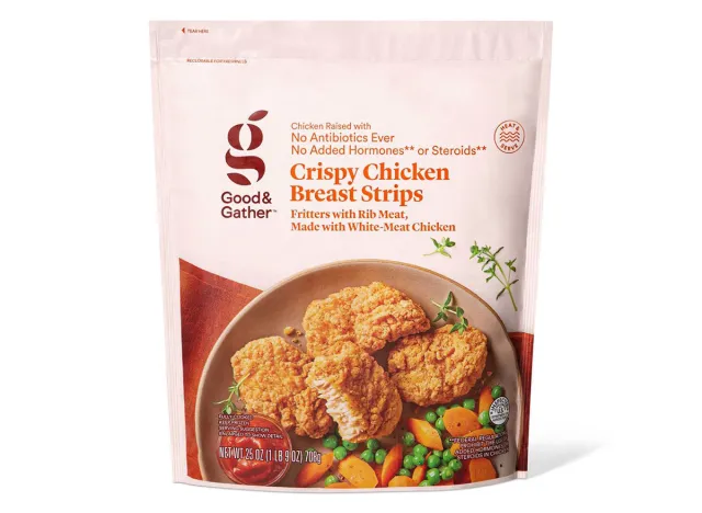 Tyson is no spring chicken in the poultry game. The multinational food corporation got its start in 1935 and now produces close to 20% of the beef, pork, and, of course, chicken in the United States. These poultry products include everything from fresh ground chicken to Any’tizers Chicken Fries to one of its most prized, these crispy chicken strips. Like Good & Gather’s strips, Tyson’s are made with boneless, skinless chicken breast and rib meat. The packaging also uses the word “fritters” to describe them. My local Kroger only had the family-sized bag in stock, so I walked away with 2.5 pounds of these strips, hoping they would be all they’re cracked up to be.