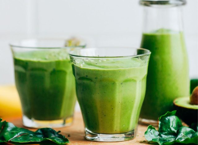 For inspiration to help you make a delicious green smoothie, we’ve collected a list of easy recipes with ingredients culminating into a smoothie that actually tastes good. You’ll find that these recipes either call for spinach or kale, and pack in other deliciously healthy ingredients like fruit, nut milk, nut butter, and seeds. Read on to learn some creative, tasty, nutritious green smoothie recipes, and for other healthy recipe ideas, check out Healthy Salad Dressings You Can Make in Minutes.
