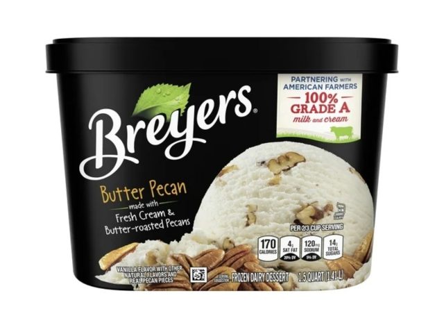 Breyers notes on its website that it’s “able to deliver” this smoother texture with its frozen dairy dessert products. These come in multiple flavors ranging from simple varieties like Extra Creamy Chocolate and Extra Creamy Vanilla to options like Cookies & Cream, Double Chocolate Brownie Batter, and Butter Pecan.