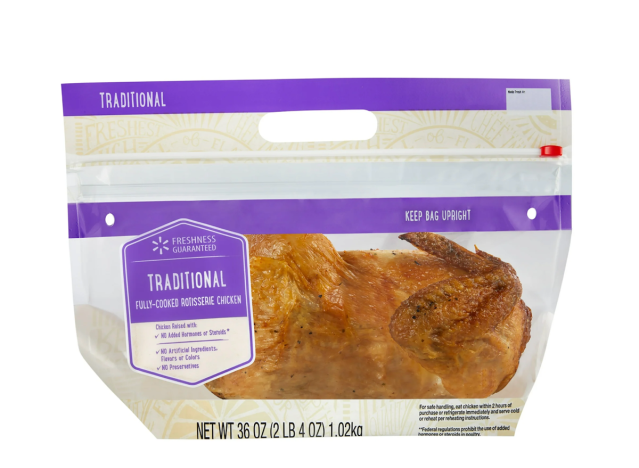 Freshness Guaranteed Traditional Rotisserie Whole Chicken isn’t quite as cheap as Costo and Sam’s, but close. Regularly priced at $6.97, you can often get it on sale for $1 less. “Love the chickens. There should be a rewards club because i eat the rotisserie chicken often as possible usually 4 a week or more. Maybe a free one once in awhile. lol like Walmart would give me anything free. lol anyway. Yanks. It’s good item that have,” writes a shopper. “The taste was wonderful and the price is so much cheaper than at other stores. Had it delivered to my house and had it for dinner. When we finish eating it for a meal, I take the rest of the chicken and debone it to make chicken salad, so I get 2 wonderful meals from it,” adds another.