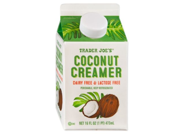 Sold in the refrigerated dairy section at your local Trader Joe’s, this creamer made our healthiest list due to its low calories, fat, and sugar content. The creamer keeps these ingredients in check because the first ingredient is water, and it is blended with coconut cream and some can sugar. It does include gellan gum to maintain texture. If you like the taste and texture of coconut milk-based creamers, this is a good option.