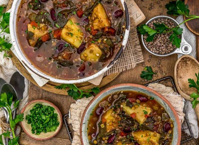 This copycat recipe contains all the feels and flavors of a comfort food favorite, without the comfort food carbs. Healthy sausage and lentil soup is filled with vegetables and lentils are high in fiber, folate, and potassium, which helps manage blood pressure and cholesterol. This is one meal your heart will quite literally thank you for.